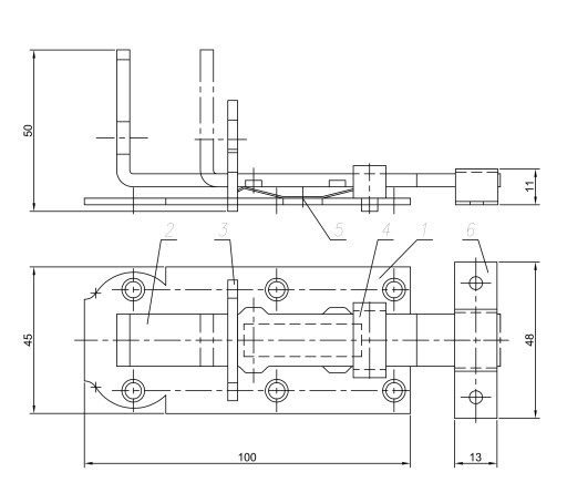 Zasuwka zamykana z ryglem prostym na kłódkę