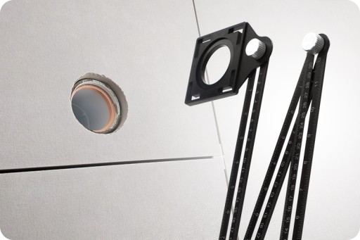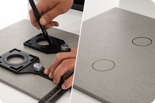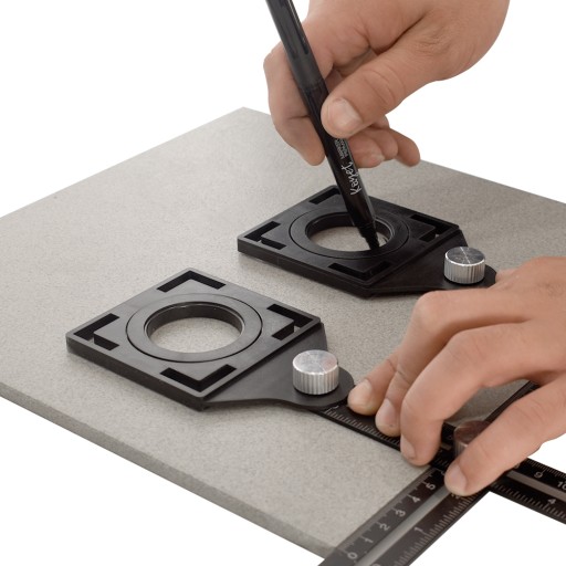 Nie muszisz już wykonywać skomplikowanych obliczeń czy odrysowywać linii i rysować na materiale niepotrzebnych linii. Wystarczy, że przyłożysz linijkę do interesującego Cie miejsca, ustawisz ramiona, a następnie w 3 sekundy oznaczysz miejsce na otwór na płytce czy innym materiale.