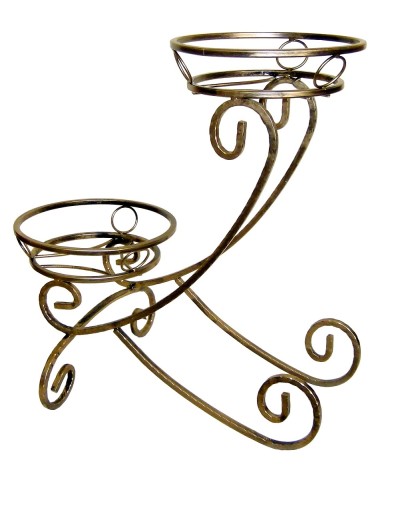 Kwietnik na dwie doniczki. Kwietnik jest trwale i estetycznie wykonany z metalu. Może stanowić element dekoracyjny wnętrza mieszkania lub biura.Precyzyjnie wykonane metalowe elementy kwietnika dopasują się praktycznie do każdego stylu.