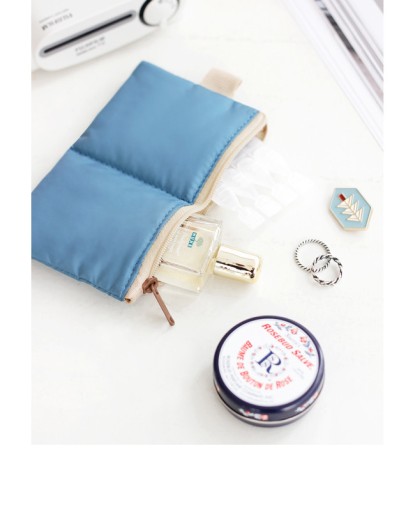 Uszyty z poliestru, w środku ma wypełnienie, które zabezpieczy kosmetyki przed uszkodzeniem. Można wywinąć brzegi kosmetyczki, dzięki czemu kosmetyki będą lepiej widoczne.