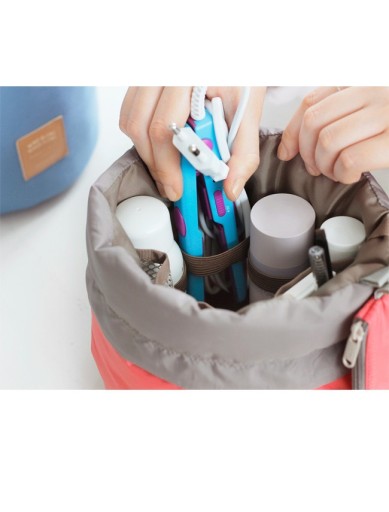 Zamykany za pomocą ściągacza, w środku ma kieszonki z siateczki oraz gumki, które ułatwiają przetrzymanie rzeczy. Do organizera dołączona jest saszetka w kolorze organizera.