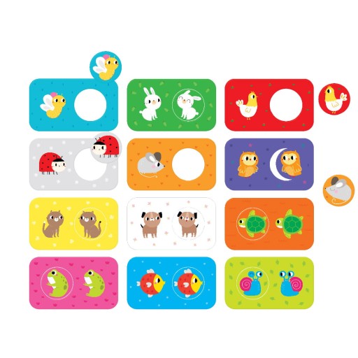 Wesołe zwierzątka zapraszają do wspólnej zabawy! Edukacyjny zestaw sprawdzi się jako pierwsze puzzle dla maluchów. Składa się 12 dużych dwuelementowych układanek. Zabawa polega na dopasowywaniu wyjmowanych dwustronnych kółeczek. Aby była jeszcze weselsza, możecie je dowolnie wymieniać pomiędzy tabliczkami.