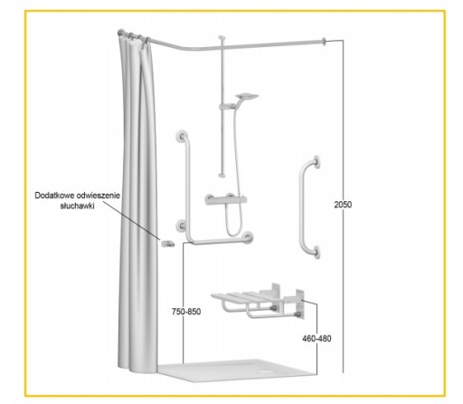 Regulowany prosty drążek zasłony prysznicowej w razie potrzeby ma długość od 80 do 90 cm. Można go składać lub rozszerzać w podanych wyżej rozmiarach. Do produkcji zastosowano rury stali nierdzewnej o grubości 1,5 mm i średnicy rury 25 mm. Przedmiotem aukcji jest drążek z zestawem śrub montażowych. Drążek mocowany jest do ściany w dwóch miejscach i można go przyciąć do wymaganego rozmiaru.
