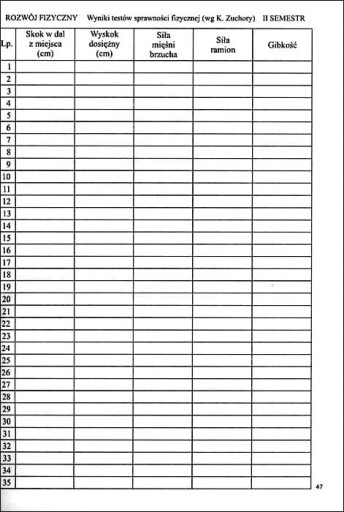 Dzienniczek nauczyciela WF (wychowania fizycznego)