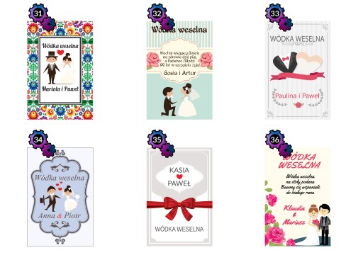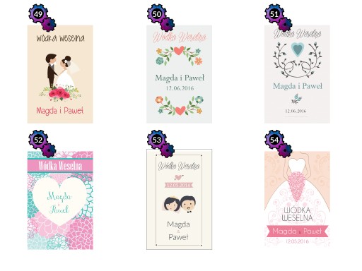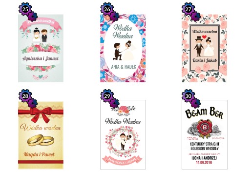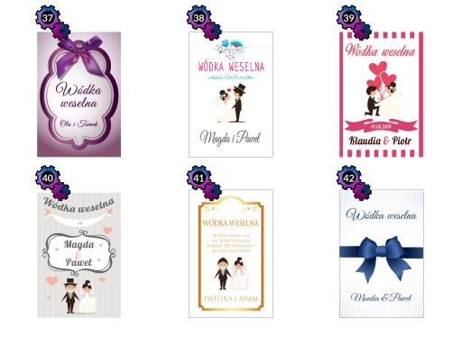Przedmiotem aukcji jest zestaw 8 naklejek na WÓDKĘ WESELNĄ, do wyboru w obrębie jednego z dostępnych wzorów.
