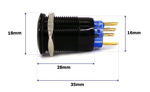 Włącznik świateł przeciwmgielnych LED 16mm czarny zatrzaskowy