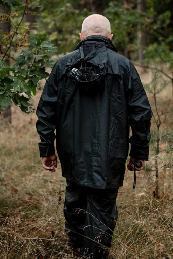 - wysunięty, przezroczysty daszek w kapturze chroniący oczy przed deszczem