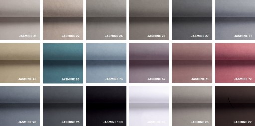 Poniżej znajdują się próbniki tkanin wraz z oznaczeniami Ze względu na różne parametry monitorów, oraz zmienne warunki oświetleniowe, powyższą kolorystykę prosimy traktować jako poglądową. Kolory mogą ulegać zniekształceniu w zależności od ustawionego kontrastu monitora. Kolor tkaniny może wydawać się inny w zależności od rodzaju użytego oświetlenia w domu: klasyczne żarówki, świetlówki czy żarówki typu LED z wysoką temperaturą bieli.