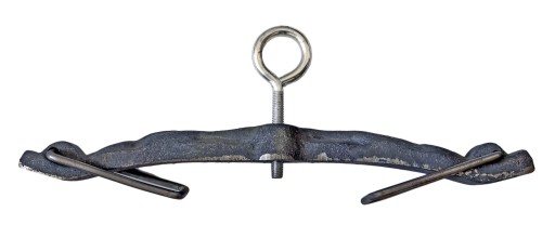 Belka, uchwyt żeliwny do kociołka żeliwnego ze śrubą dociskową zakończoną kółkiem.