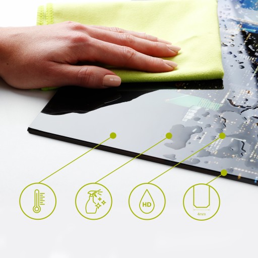 Oferowana przez nas szklana płyta służy nie tylko do wyrażania własnych upodobań (szeroka baza dostępnych motywów) - w dniu codziennym pomaga również chronić otoczenie przed zabrudzeniami.