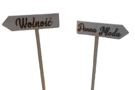Cena dotyczy kompletu 2 szt drogowskazów BEZ słupków (1x drogowskaz "Panna Młoda" + 1x drogowskaz "Wolność" )