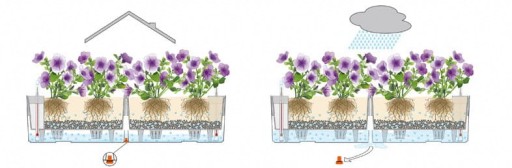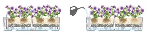 System nawadniający zintegrowany z donicą gromadzący zapas wody na jej dnie, pozwala na dużo rzadsze podlewanie roślin.