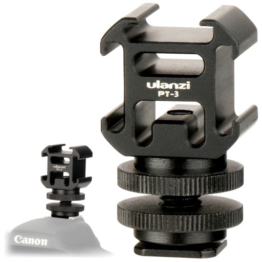 Głównym przeznaczeniem złącza montażowego Ulanzi PT-3S jest rozwiązywanie problemów z jednoczesnym użyciem mikrofonu i dodatkowego oświetlenia LED a nawet monitora podglądowego.