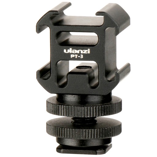 Adapter Ulanzi PT-3S pozwala na montaż jednocześnie aż 3 dodatkowych akcesoriów za pomocą zimnej stopki.