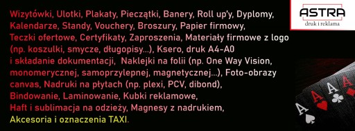 - wizytówki, plakaty, ulotki, pieczątki, banery, roll up'y