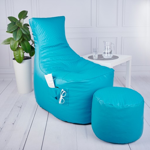 - Wytrzymały pikowany materiał na górnej części pufy i podnóżka
