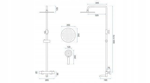 - Bateria: termostat, korpus mosiężny, głowica ceramiczna