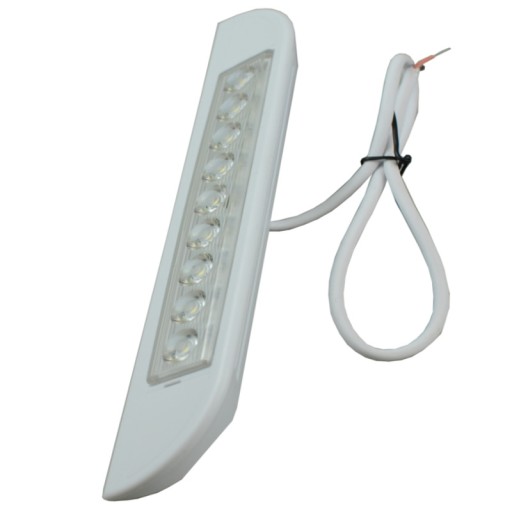 Lampa wysokiej klasy, posiada wbudowany stabilizator napięcia, może pracować w instalacjach 12V i 24V. Wykonana z wysokiej jakości komponentów, odporna na wstrząsy oraz przeciążenia. Dużą jasność światła zapewnia 9 mocnych diod LED z soczewkami