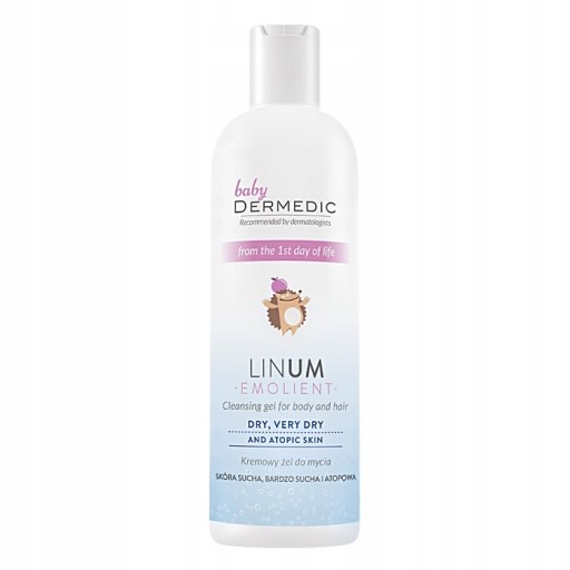 DERMEDIC Emolient Linum baby żel do mycia ciała przeznaczony jest do codziennej higieny skóry ciała oraz włosów dzieci i niemowląt z problemem skóy bardzo suchej, atopowej lub z objawami łuszczycy. Żel delikatnie myje, nawilża, ogranicza uczucie swędzenia suchej skóry, redukuje podrażnienia i zwiększa odporność naskórka. Preparat ten może być stosowany już od 1-go dnia życia. Należy stosować zgodnie z zaleceniami na opakowaniu.