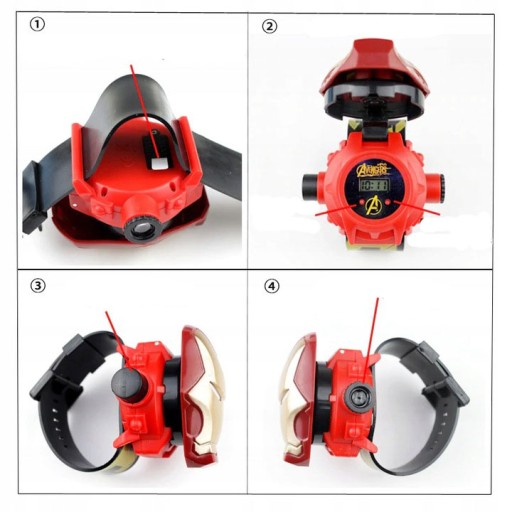 Zegarek jest oryginalnie zapakowany jak na jednym ze zdjęć. Aby uruchomić projektor należy zdjąć zabezpieczenie baterii z tyłu zegarka.