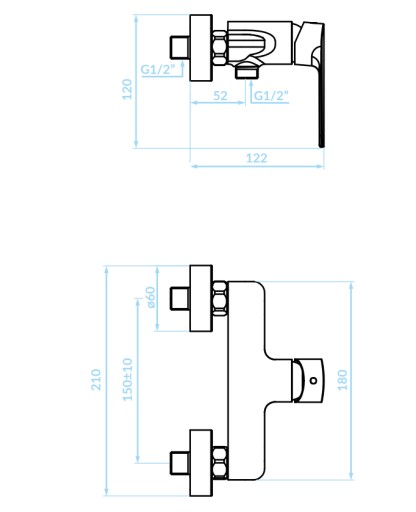 - Zasięg od ściany: 38 cm (do środka deszczowni)
