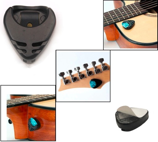 Uwaga! Pojemnik może nie pasować do większych rozmiarowo kostek. Jego główne przeznaczenie to kostki celuloidowe, w przypadku większych konieczne jest poszerzenie otworu. W przypadku większych kostek warto wybrać uchwyt firmy MuziK
