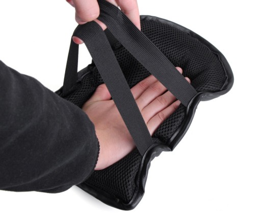 Wykonana z ekoskóry (imituje prawdziwą skórę), wypełniona sprężystym materiałem, na spodzie posiada wentylowany materiał i dwie mocne gumy - do montażu na klapie podłokietnika.
