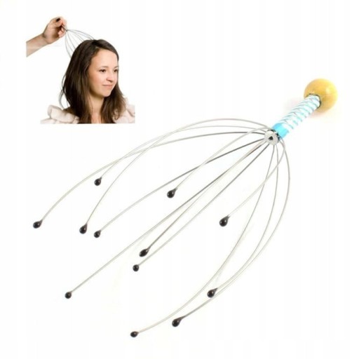 - Fabrycznie nowy, wysokiej jakości masażer do głowy i ciała 12 punktowy z metalową rączką.