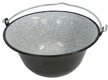 - Wysokiej jakości kociołek emaliowany 16 litrowy, doskonale nadający się na piknik, dłuższą wyprawę, kemping, łatwy do podwieszenia na trójnogu