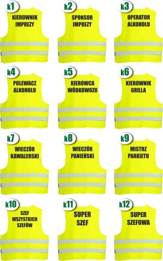 - Kamizelki dostępne w kolorach żółtym oraz pomarańczowym.