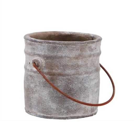Doniczka wiaderko z metalową rączką w kolorze szarym. Donica wykonana jest z ceramiki w stylu vintage nadając niepowtarzalnego uroku. Idealnie sprawdzi się jako osłonka na kwiaty. Polecam jako prosty, a jednocześnie efektowny element dekoracyjny.