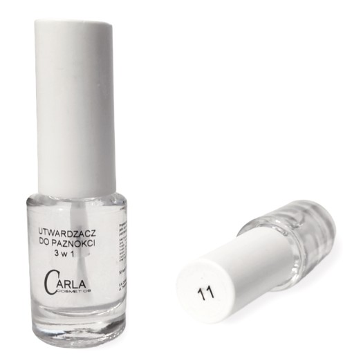 Spełnia trzy zadania w jednym! Unikatowa formuła odżywki do paznokci 3 w 1 nr 11 CARLA zapewnia utwardzenie płytki paznokcia, daje jej powłokę ochronną oraz połysk. Dodatkowo zapobiega ich łamaniu się.