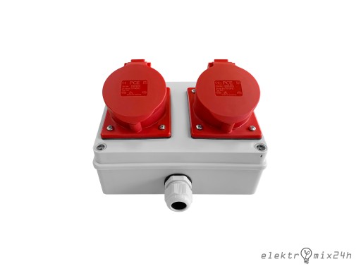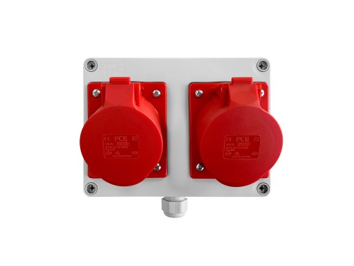 - 2 x gniazdo 3F+N+PE 400V 32A
