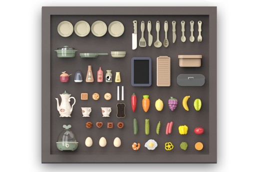 - DESKA DO KROJENIA — na której można kroić owoce i warzywa na pół. Łączą się ze sobą przy pomocy rzepa, przy krojeniu wydają charakterystyczny odgłos.