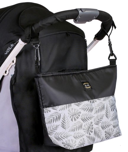 Torba jest również wyposażona w uniwersalne zaczepy do wózka, którymi przymocujesz ją do każdej prowadnicy wózka. Są to 2 uchwyty do zamocowania na rączce wózka na zasadzie przewlekania jak pętelkę.