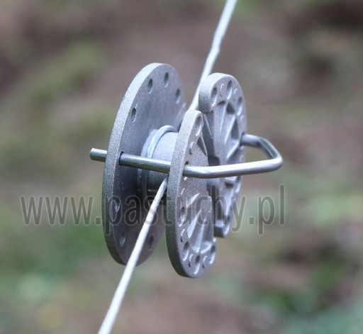 Napinacz metalowy do drutu. Pozwala łatwo regulować naprężenie przewodów ogrodzenia. Metalowa blokada pozwala na zabezpieczenie naciągniętego drutu. Dla usprawnienia całego procesu naciągania przewodów, należy wyposażyć się w specjalną kierownicę do napinacza.