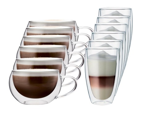 Maxxo zestaw filiżanek termicznych ze spodkami LATTE i CAPPUCCINO - zestaw 12 kompletów