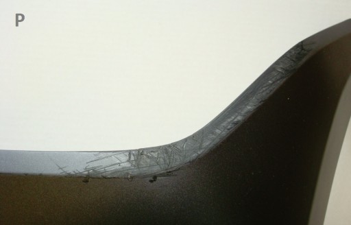 P1 : PRZETARCIA NA KRAWĘDZIACH, 3 ZACZEPY ZŁAMANE, PĘKNIĘCIE W MIEJSCU OTARCIA /MAG.6801612763/