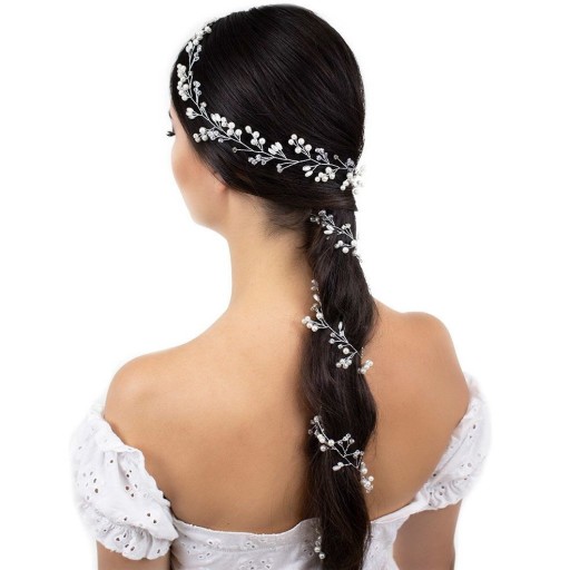 OZDOBA DO WŁOSÓW długa ŚLUBNA SREBRNA - 50cm - 35096 Miss Glow