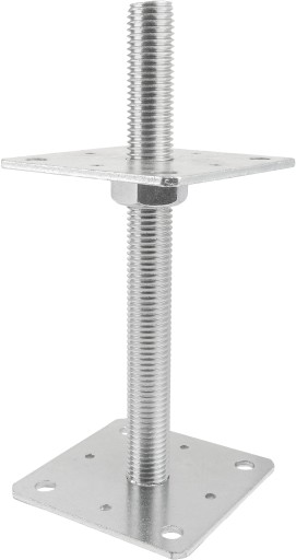 Podstawy słupa z prętem gwintowanym umożliwiają estetyczny montaż drewnianych słupów balkonów, altan i zadaszeń. Szeroki zakres regulacji wysokości. Wprowadzony do słupa pręt zwiększa stabilności konstrukcji. Dylatacja z podłożem zapobiega procesom degradacji drewna. Elektrolityczna powłoka cynkowa o grubości min. 20um doskonale chroni przed korozją.