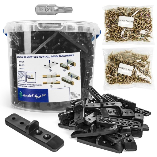 Oferujemy zestaw elementów do ukrytego montażu desek tarasowych. Produkty marki SIMPLEFIX DECK LINE to świetne rozwiązanie dla osób układających deski tarasowe zarówno zawodowo, jak i amatorsko.