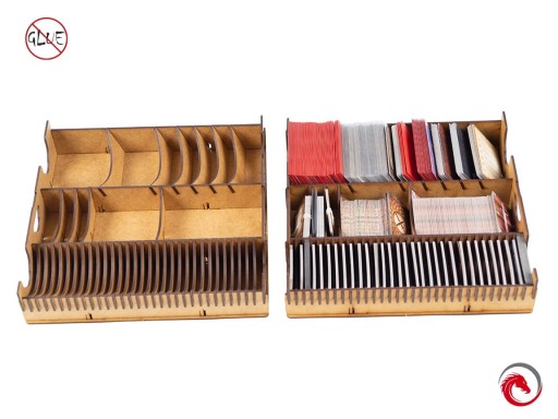 Możesz trzymać wszystkie swoje plansze gracza, miniatury, żetony, karty z rękawami, tarcze, pudełka, kafelki map itp. W jednym miejscu, nie obawiając się utraty kontroli nad ustawieniem. Mogą być łatwo dostępne i nie zajmują tak dużo miejsca, jak podczas gry bez wkładki. Ponadto, gdy pudełko jest zamknięte, komponenty są nadal utrzymywane w porządku, gotowe do ustawienia kolejnej gry szybciej niż kiedykolwiek wcześniej.