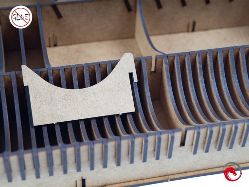 Wkładka jest trwała i wykonana z wysokiej jakości HDF. Aby go zmontować, nie jest wymagany klej. Pozwala na przechowywanie wszystkich elementów wewnątrz pudełka, w tym płyty, książki scenariusza, kafelków mapy i instrukcji.