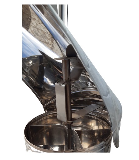 Posiada specjalne wcięcia w czapie, do których wpada wiatr powodując podciśnienie w kominie co skutkuje polepszeniem ciągu kominowego!
