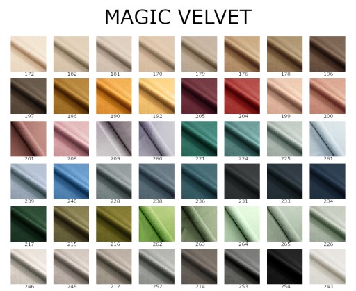 - Magic Velvet - tkanina typu welur/velvet, plamoodporna i łatwa w utrzymaniu czystości