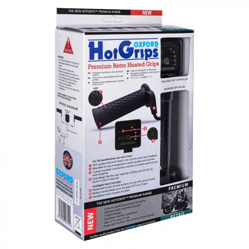 Model Retro należy do popularnej serii manetek podgrzewanych Hot Grips Premium firmy Oxford i zaprojektowany został z myślą zapewnieniu jak największego komfortu podczas jazdy posiadaczom klasycznych motocykli typu bobber czy cafe racer. Zamierzenie to zostało osiągnięte dzięki połączeniu gumy, z jakiej wykonano same manetki, wytłoczonemu w niej wzorowi, który zapewnia pewny uchwyt kierownicy nawet w grubych rękawicach, łatwemu w obsłudze panelowi sterującemu oraz specjalnie wyprofilowanemu okablowaniu.