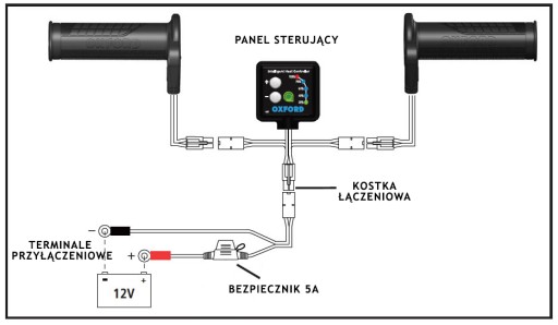 Montaż manetek jest prosty i nie wymaga żadnych skomplikowanych czynności przy motocyklu (całość podłączana jest bezpośrednio do akumulatora, z pominięciem przewodu zapłonowego). Manetki pasują do kierownic o średnicy 22mm, a długość uchwytu wynosi 123mm. Budowa manetek pozwala na skrócenie ich długości do 114mm bez naruszania zatopionych w gumie przewodów grzewczych. Zestaw zawiera dwie manetki, sterownik wraz z uchwytem, regulator, przewody z bezpiecznikiem, opaski oraz klej.