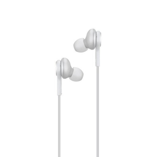 Doskonałe słuchawki Samsung wersja AKG z powleczonym plecionką przewodem, pilotem z mikrofonem i kompletem wymiennych gumek.
