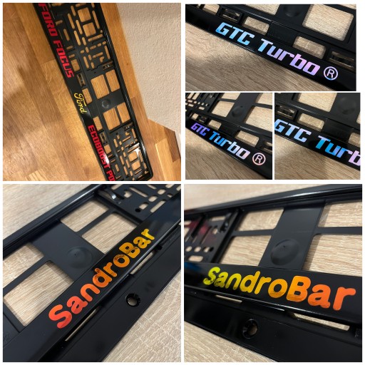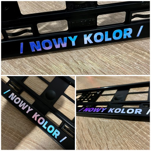 * kolor ramki jest to metalizowany czarny (zdjęcia pokazują jakie dostępne kolory napisu mogą się na niej znajdować )