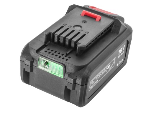 - Charakterystyka: Napięcie akumulatora: 18V Pojemność akumulatora: 4.0Ah Typ ogniw: Li-Ion Zakres temperatury otoczenia: 4°C-40°C Waga: 0.65kg